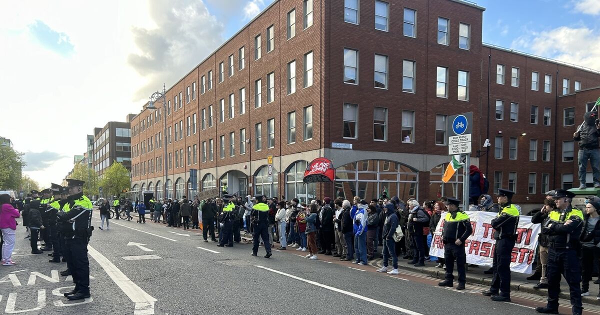 ガルダ治安部隊は、ダブリン市中心部の仮設移民キャンプを巡る抗議デモ参加者と反対デモ参加者の対立に出席した。
