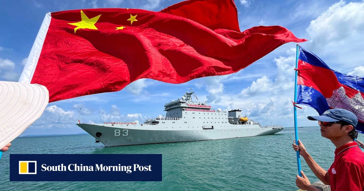 先月カンボジアのシアヌークビルで行われた歓迎式典で、中国の練習船が入港準備を整える中、人々がカンボジアと中国の国旗を振っている。写真:AFPさらに、カンボジアは「報復行動ではなく対話」を支持していると述べ、 東南アジア諸国連合 地域に影響を及ぼす安全保障に関する議論の重要なプラットフォームとして、カンボジアとASEAN加盟国が共有する懸念は、 タイ 紛争は ミャンマー今年で3年目を迎え、 詐欺行為 タイのスティン・クルンサン国防相は、同国での軍事作戦とそれに関連する人身売買について語った。