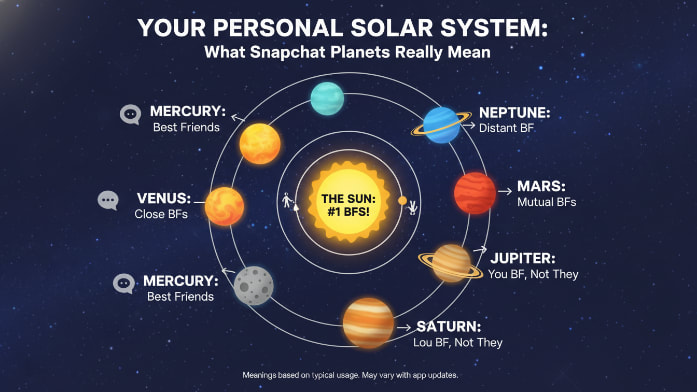 あなたの個人的な太陽系: Snapchat の惑星が本当に意味するもの Snapchat+ を使用している場合は、友達のプロフィール上で太陽の周りを回る小さな惑星に気づいたことがあるでしょう。これは単なる宇宙をテーマにした装飾ではなく、友情のためのランキング システムです。かわいいグラフィックのように見えますが、実際には、Snapchat が誰と最もよく話しているかを測定する方法を垣間見ることができます。 「いいね!」とフォロワー数でいっぱいの世界において、Snapchat は親友のために本格的な太陽系を提供することにしました。これは賢いアイデアですが、「惑星」の順序を知らないと少し混乱するかもしれません。これらの惑星があなたの社会生活にとって実際に何を意味するのかを詳しく見てみましょう。 システムの仕組み Snapchat ソーラー システムは、あなたが誰かとどれだけ近いかを視覚的に示す方法です。この設定では、あなたは「太陽」であり、あなたの友人はあなたの周りを回る惑星です。この小さな図の中で惑星が太陽に近ければ近いほど、他の友達と比べて、その人との絆は強くなります。 これはあなたの星座に関するものではないことを覚えておくことが重要です。それはどのくらいの頻度でやり取りするかということです。この機能はSnapchat+加入者限定です。友人の太陽系内での自分の位置を確認できるのは、両方ともプレミアム サブスクリプションを持っており、「フレンド ソーラー システム」機能がオンになっている場合のみです。これはプライベートランキングであり、プロフィール上の自分の順位を確認できるのはあなただけです。 友情のラインナップ:水星から冥王星まで 各惑星は、あなたの親友トップ 8 の特定のランクを表します。人々はこれらのランキングを驚くほど真剣に受け止めています。近いものから遠いものへの順序は次のとおりです。 マーキュリー (ナンバー 1 スポット): これは究極のライド・オア・ダイです。誰かの名前の横に Mercury が表示されている場合、その 2 人はアプリ上で切り離せない関係にあります。スナップを絶えず送受信しています。これは、Snapchat におけるあなたの絶対的な親友です。 金星 (#2 スポット): まだ信じられないほど近いです。金星は、あなたがその人と非常に緊密であることを意味します。彼らがまだトップの座にいないとしても、あなたはおそらく毎日彼らと会話しているでしょう。 マーズ (#3 スポット): 強い友情。火星は、あなたが定期的にコミュニケーションをとる良い友達であることを示しています。あなたは間違いなく、お互いのSnapchatの世界の大きな部分を占めています。 ジュピター (#4 スポット): 心強い友人。あなたは連絡を取り合い、話を共有し、おそらく週に数回チャットします。それは一貫した健全な接続です。 土星 (第 5 位): あなたは間違いなく友達ですが、毎日話すわけではないかもしれません。あなたは今でも瞬間を共有しますが、その頻度は内輪よりも少し低くなります。 天王星 (#6 スポット): 友好的なつながり。やり取りはしますが、長いチャット セッションよりもストーリーに反応することが重要かもしれません。 ネプチューン (#7 […]